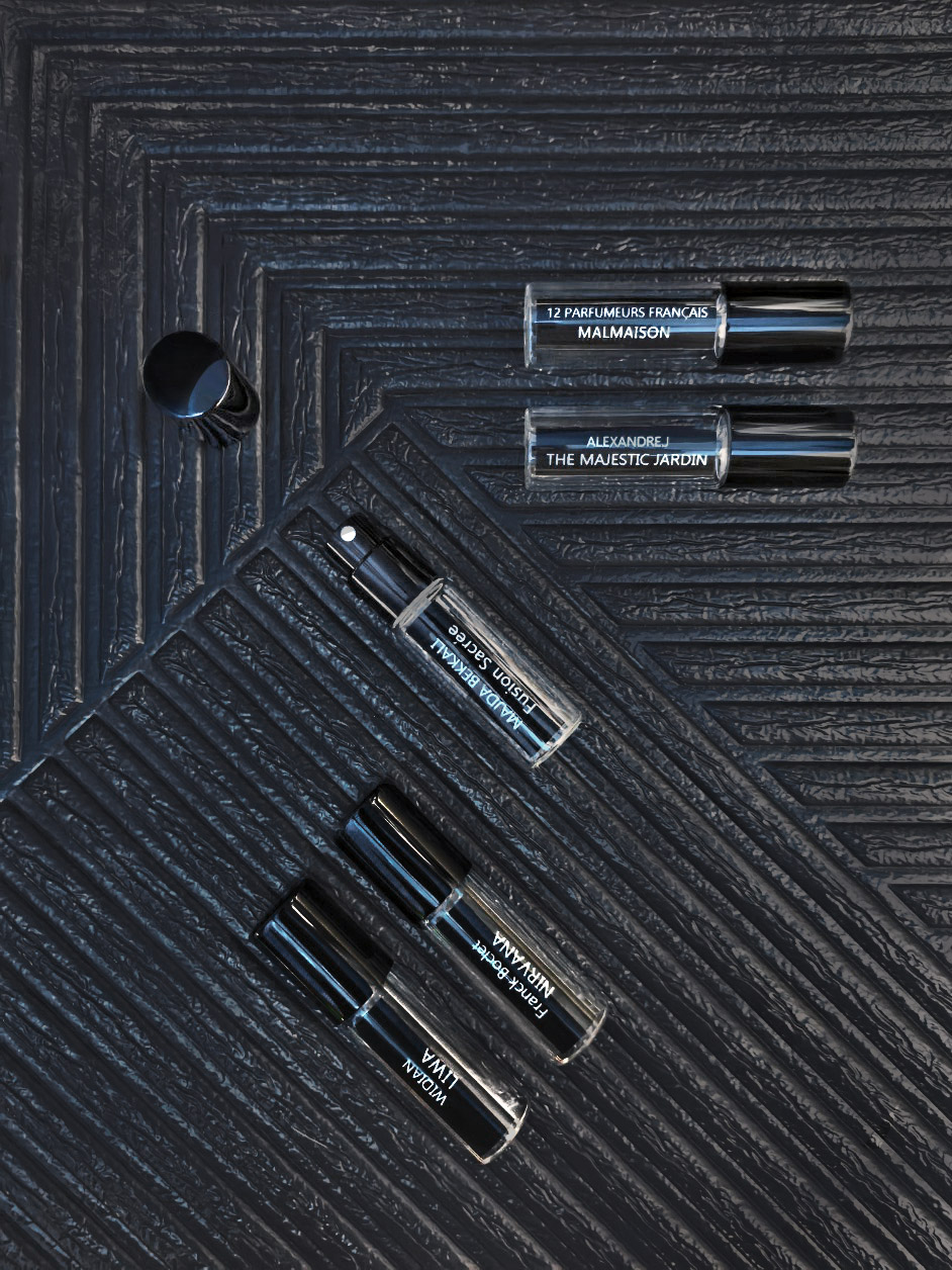 - пустые флаконы с нанесённым лейблом, которые прилагаются к покупкам ароматов в качестве бонуса, как тревел-формат для самостоятельного наполнения;